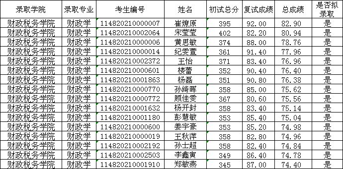 博彩导航 2020年财政学硕士研究生一志愿复试工作已经结束,现将博彩导航 财政学硕士研究生拟录取名单公示如下: