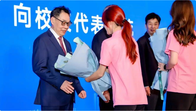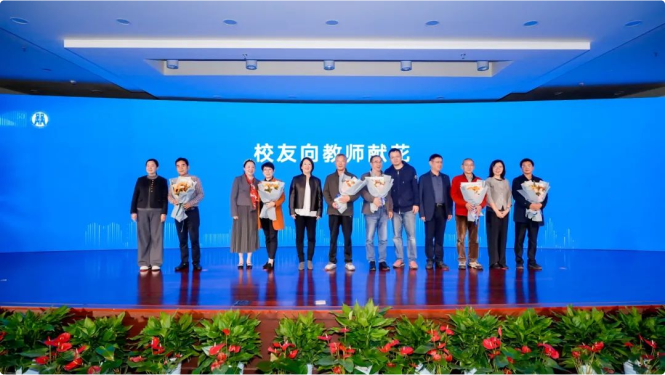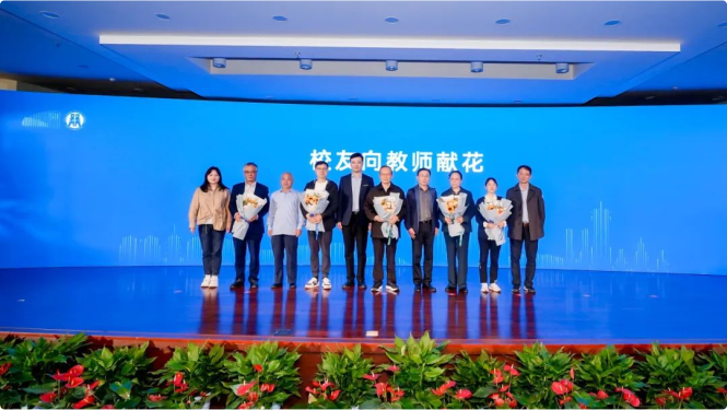 教学一线辛勤耕耘的教师,胡少先、马旭明、毛⽔芳、徐育雄、夏月龙、王国海、应飞虎、陈桂雷等8位荣获重要荣誉表彰的校友献上致敬的鲜花。在彼此的问候、祝福与勉励中,师生情谊深深相连,财税精神接力相传。