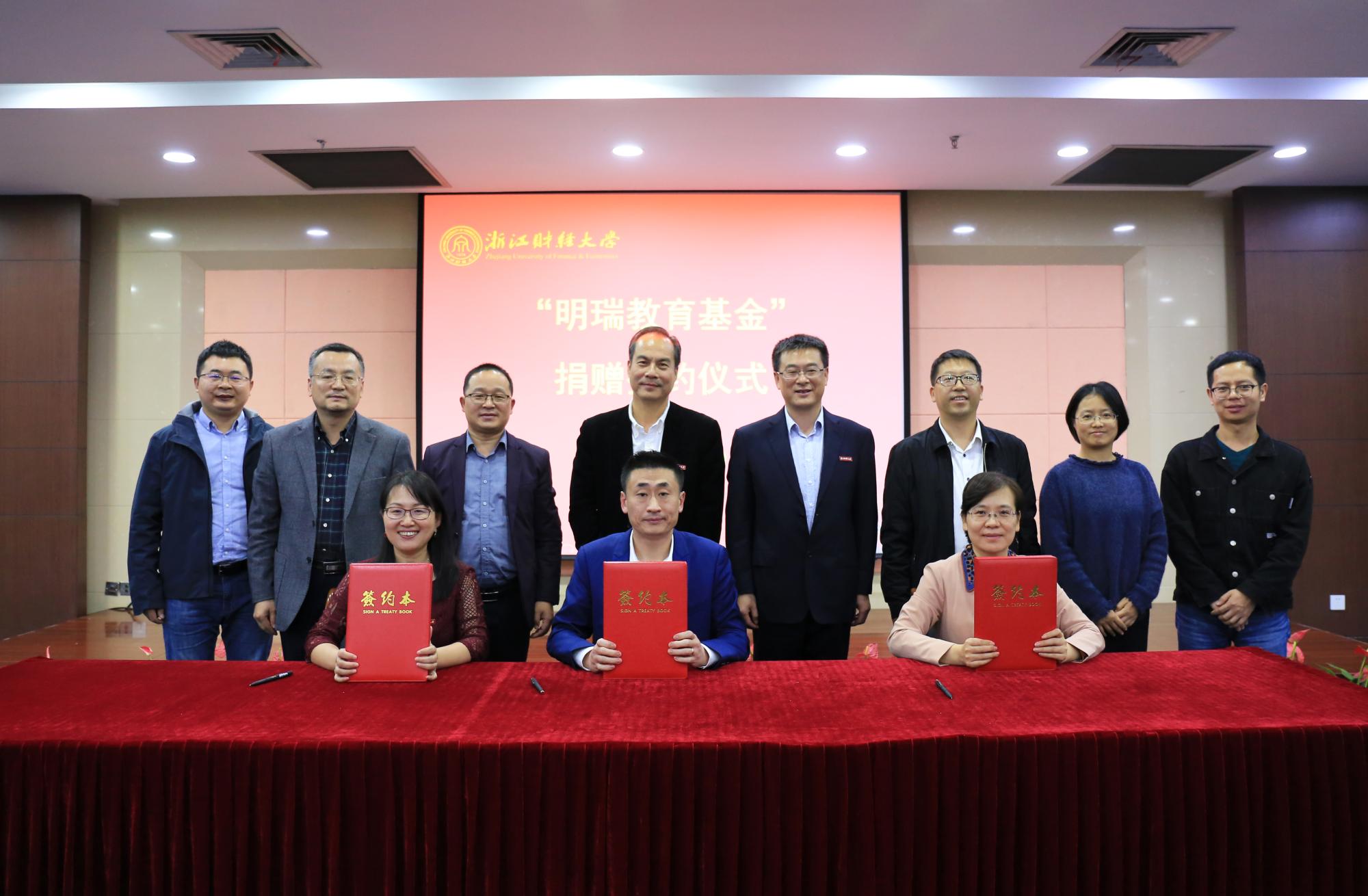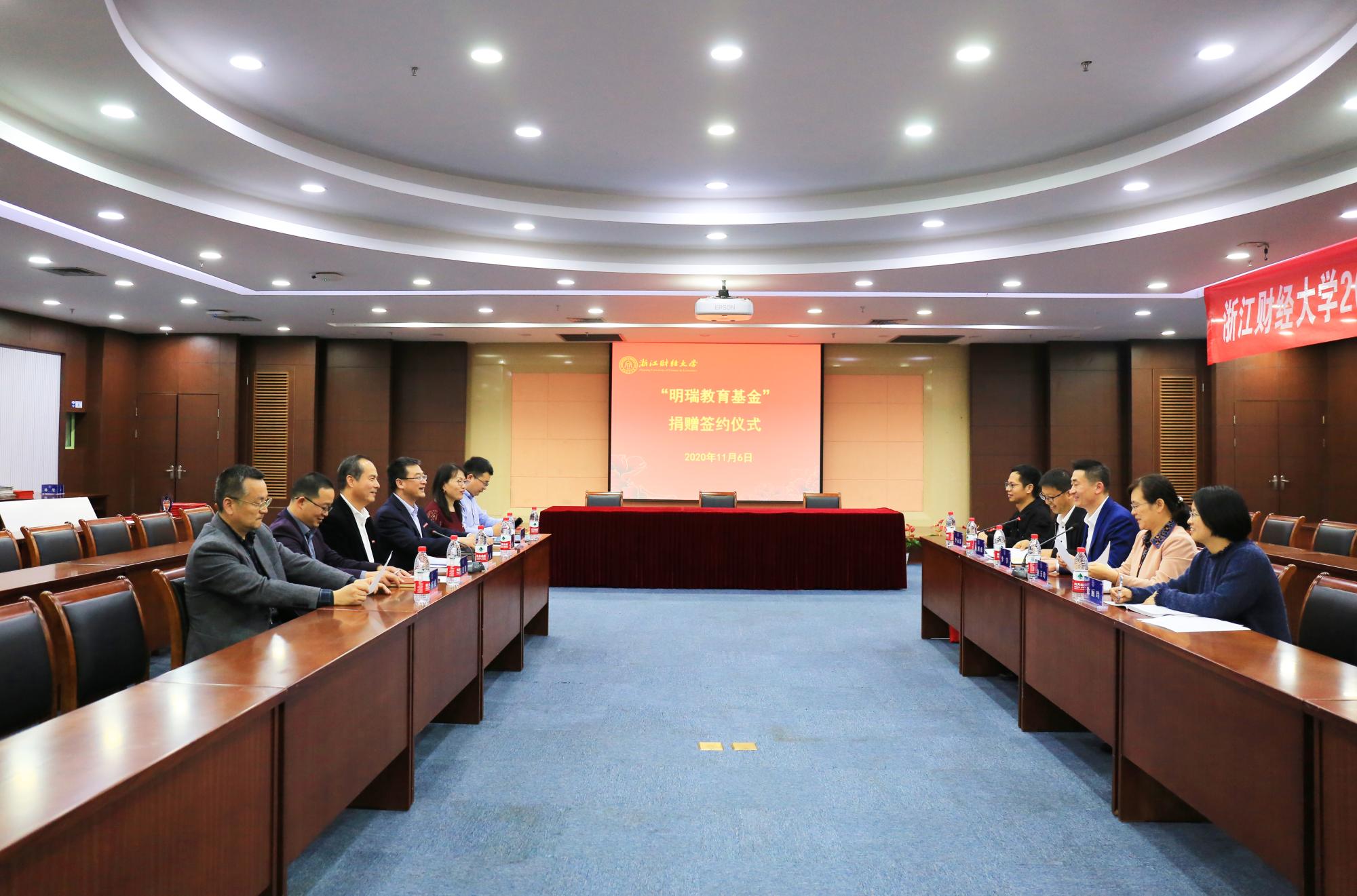 教育基金会捐赠签约仪式在下沙校区学术多功能报告厅举行。副校长、校友总会副会长王奎泉,副校长、校友总会副会长兼秘书长徐晓东,四川匠铸文化艺术品有限责任公司董事长李宇,社会合作办、校友办主任张红英,博彩导航