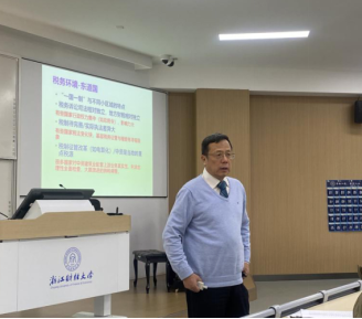 学生作“‘走出去’企业主要税务风险及应对措施”专题讲座,本次讲座由董根泰主持。