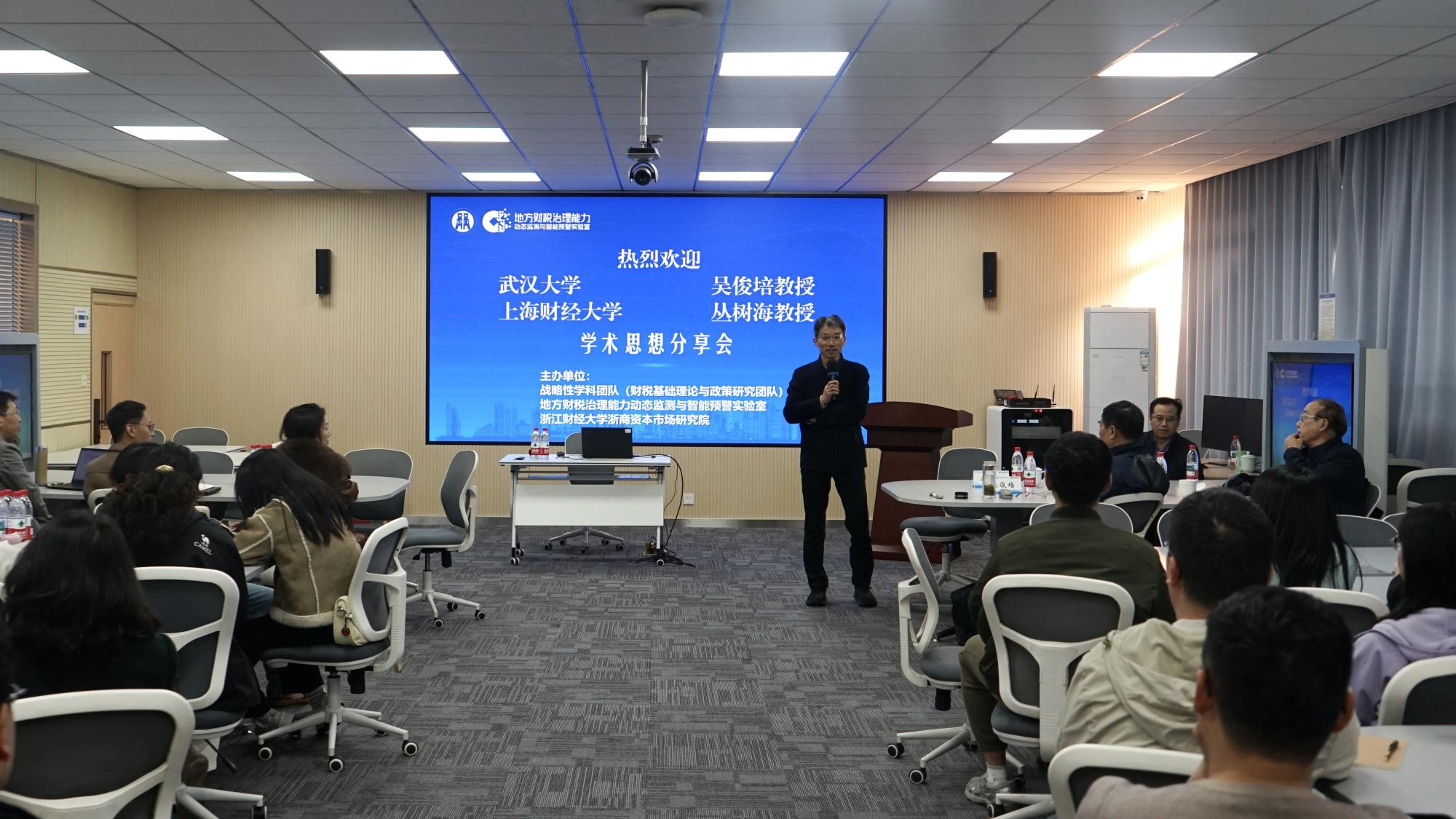浙商资本市场研究院、战略性学科团队(财税基础理论与政策研究团队)和地方财税治理能力动态监测与智能预警实验室联合主办的学术思想分享会在下沙校区顺利举行。本次分享会以新时代的财税治理理论创新为主题,武汉大学吴俊培教授和上海财经大学丛树海教授作主旨演讲,30余位专家学者围绕新时代的财税治理理论展开深入研讨。本次分享会由李永友教授主持。