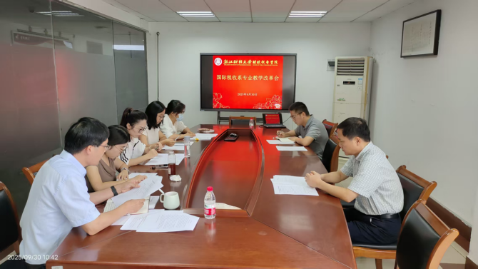 及学科建设。随后,系内各专业课教师依次汇报了主讲课程与新设课程的建设进展。其中,《中国税制》《国际税收(双语)》《外国税制(双语)》三门核心课程已进入深度提升改造阶段,重点聚焦教学内容与行业实践的衔接、双语教学模式的优化;《税务英语(双语)》《国际税收协定(双语)》《国际税收管理实务》《国际税务合规计划》四门课程则按计划稳步推进建设,目前已完成课程大纲修订、教学案例库初步搭建等关键工作。
