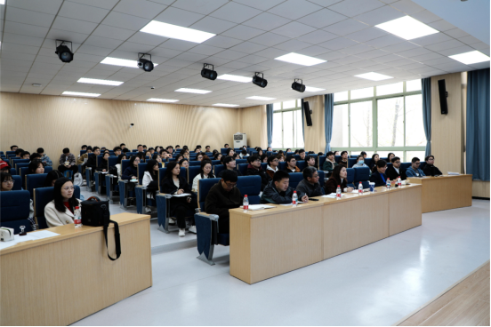 领导班子、系主任、行政人员以及师生代表150余人参加报告会。本次活动由院党委书记童玉玲主持。