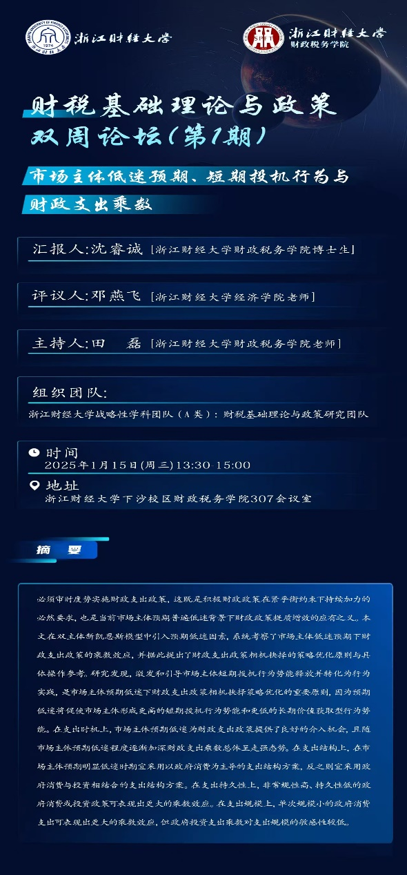 博生生沈睿诚分享了题为“市场主体低迷预期、短期投机行为与财政支出乘数”的工作论文,经济博彩导航