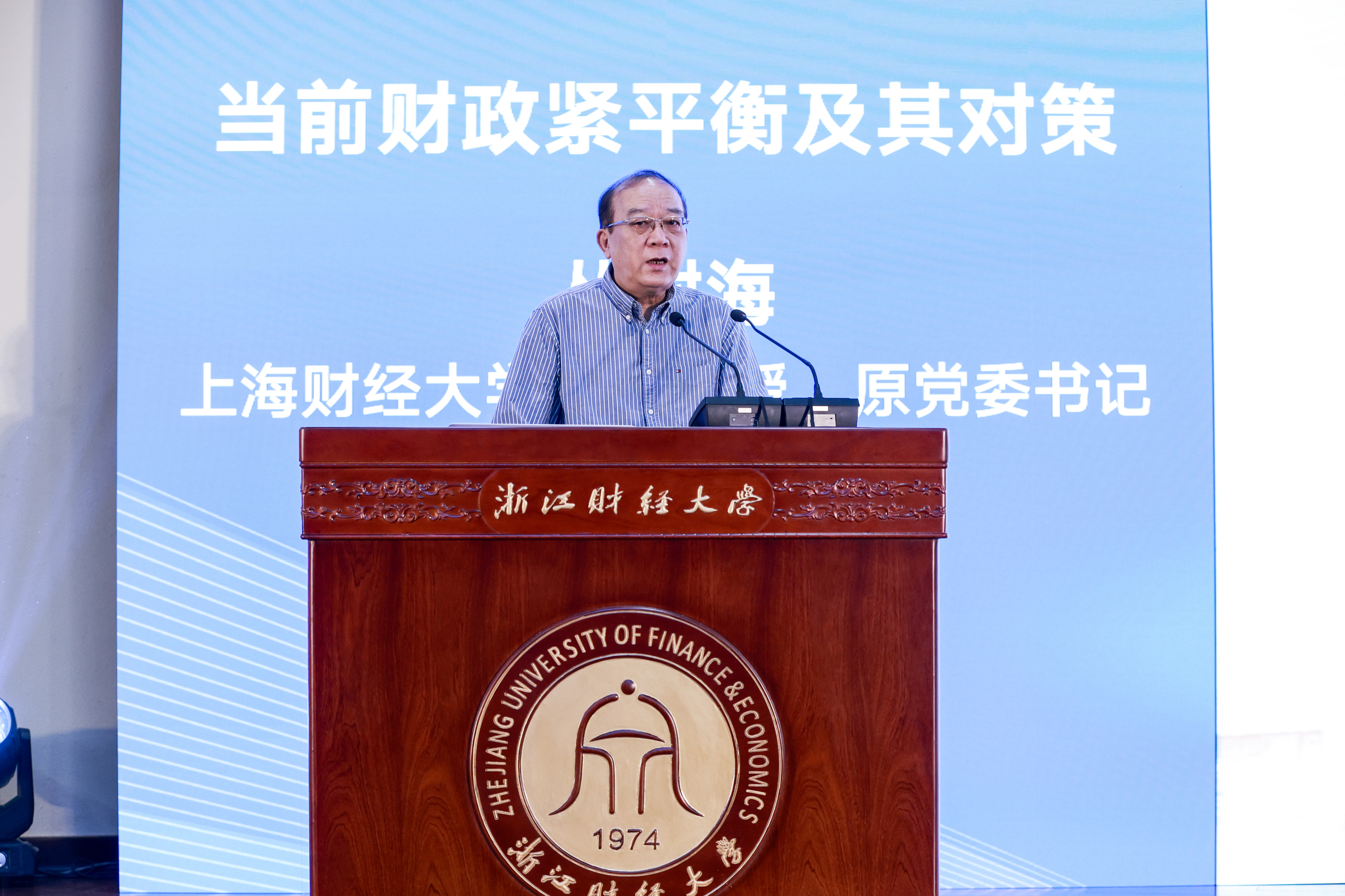 院长付文林主持主旨发言环节。上海财经大学资深教授、原党委书记丛树海,中国人民大学一级教授、财政金融博彩导航