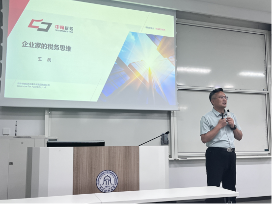 国际税收专题课程邀请了河南中翰盛胜税务师事务所王战老师,为23级全体税务研究生带来题为“企业家的税务思维”课程讲授。王战老师作为税务师行业全球税务治理的领军人才,畅游税海二十年有余,长期开展针对税收新文件解读、所得税汇算、土地增值税清算、增值税实战操作等方面的讲座,具有丰富的税务理论及实践经验。