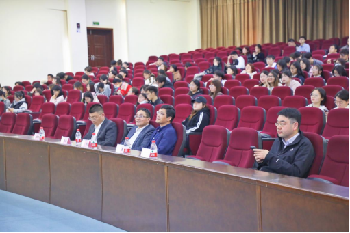 教学副院长张帆主持,中汇集团高级合伙人方敬春、校招负责人孙晓杰到访,财政系主任凌晨、税务系副主任黄冠豪出席,2022级财政学类专业全体学生参会。