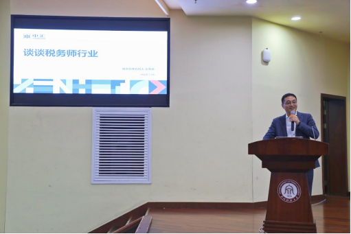 紧接着,中汇集团高级合伙人方敬春多维度、全方位地为学生们剖析了税务师行业,强调了税务师所必需具备的诚信、独立、专业能力、保密业务、风险把控等基本素质。他指出,目前税务师行业正处于高速发展阶段,希望有意向加入的同学可以不断提高专业知识水平,积累实践经验。