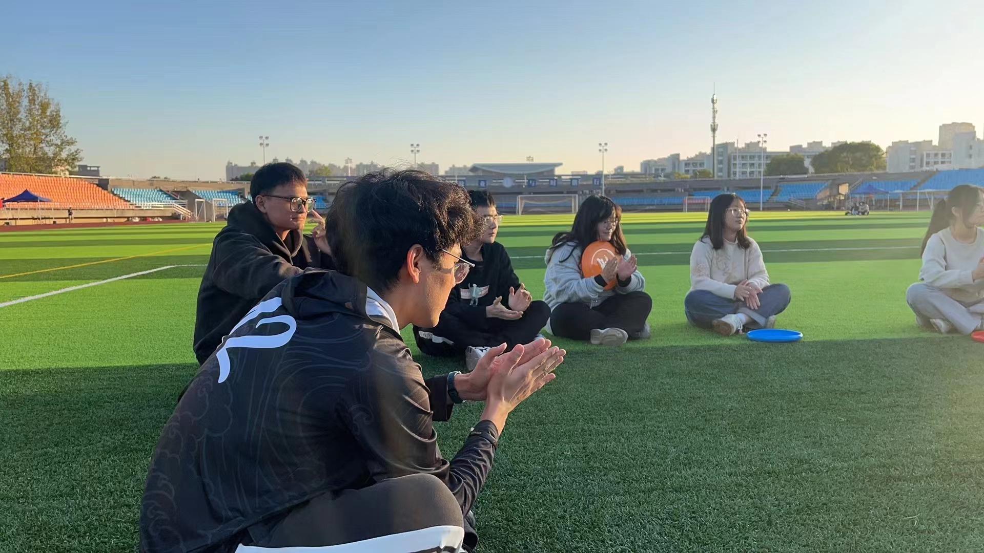 活动开始前,龚同学和周同学详细介绍了飞盘运动的兴起、攻防要领、比赛规则、注意事项等,帮助学生掌握飞盘活动的动作要领。