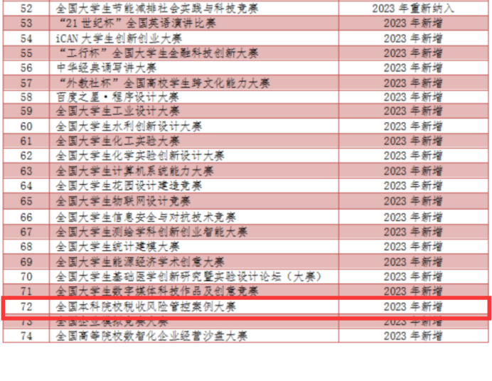 申报的“全国本科院校税收风险管控案例大赛”成功入选《分析报告》竞赛目录。