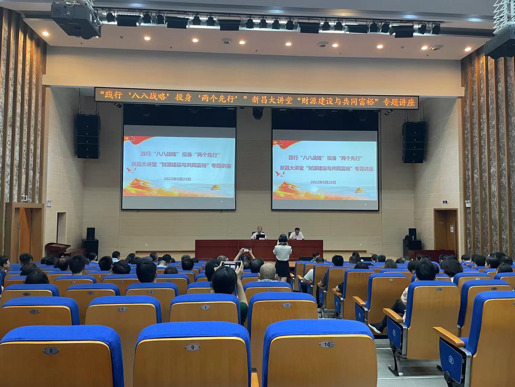 应新昌县财政局的邀请,地方财政研究院执行院长余丽生研究员8月23日赴新昌县参加“新昌大讲坛”,为新昌县政府各有关部门、乡镇长和财政干部作了“财源建设与共同富裕”的专题讲座。