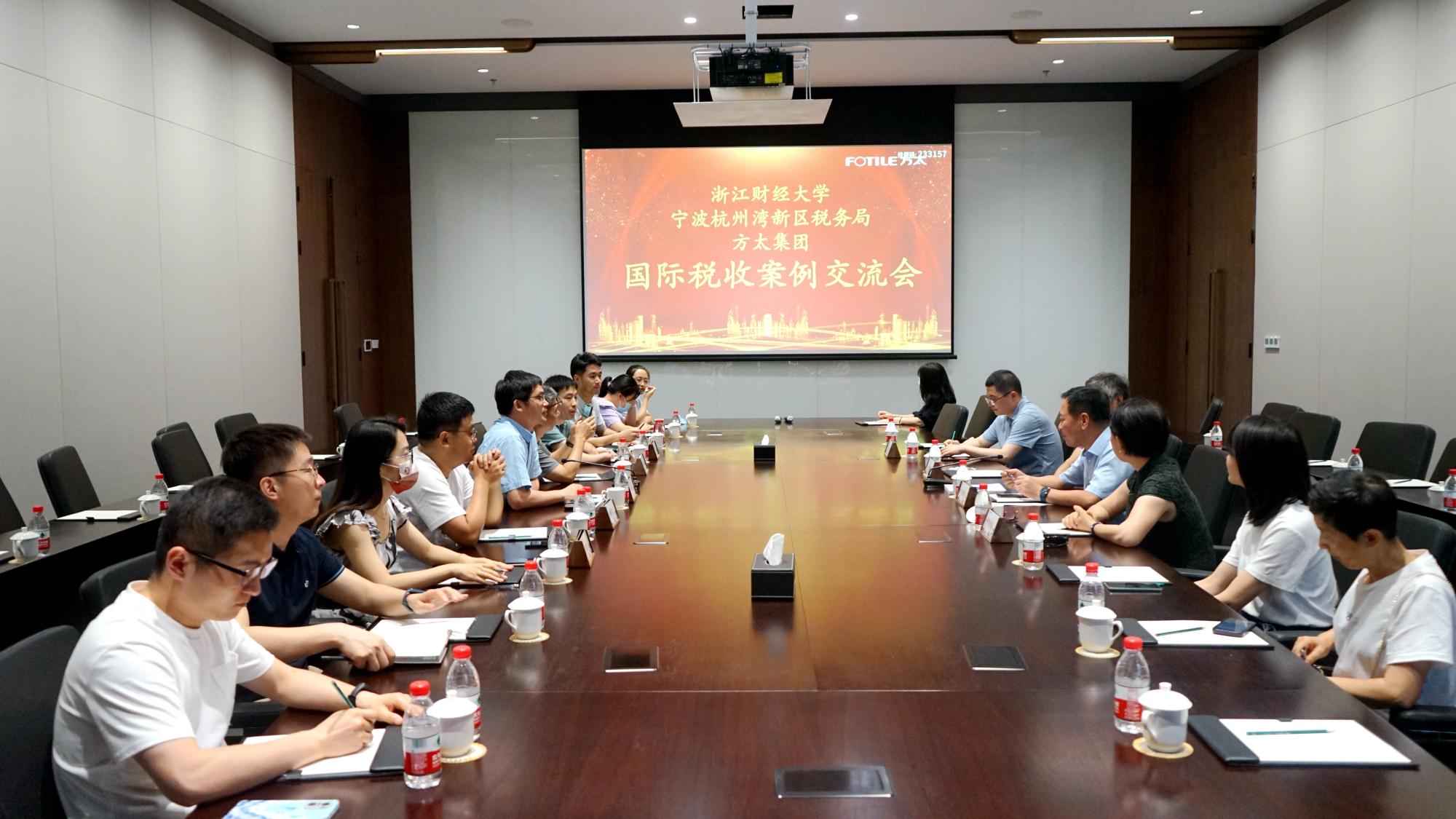 税务系和宁波杭州湾新区税务局在方太集团总部召开国际税收案例交流会,国际税收管理处处长钱正平和税务系教职工代表10余人参加会议。