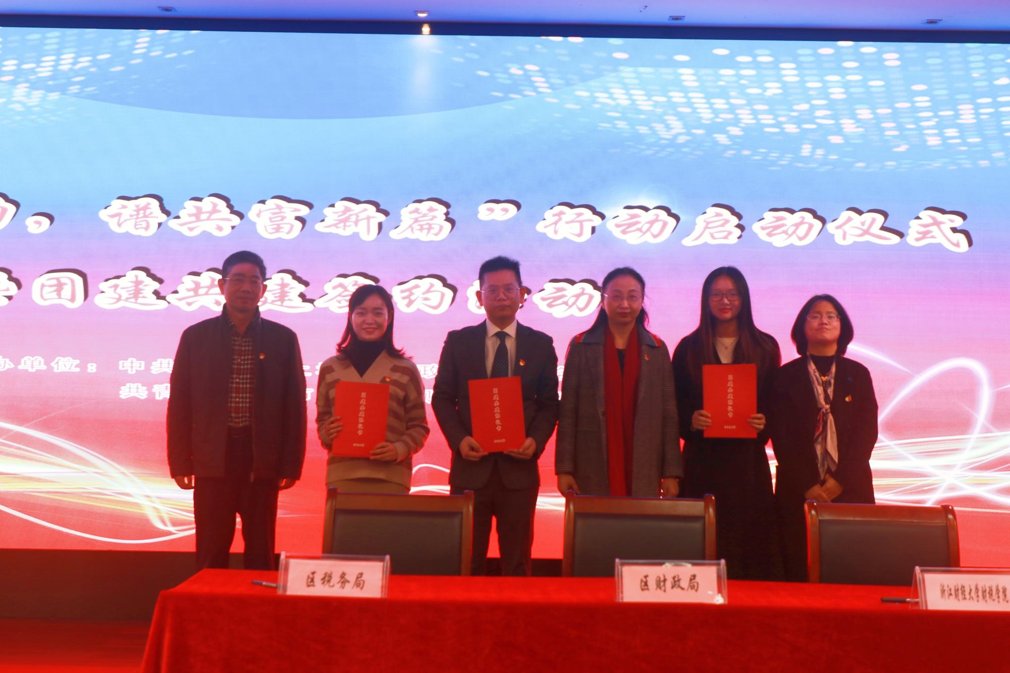 团委与上城区财政局团委、上城区税务局团总支举行团建共建签约仪式。上城区财政局党委书记、局长石荣祥,团区委书记赵丹晨,杭州团市委基层工作部副部长郑宏,市财政局团委副书记张斌豪,上城区财政局党委副书记、副局长、行业党委书记潘丽华,上城区税务局二级高级主办郑利民,博彩导航