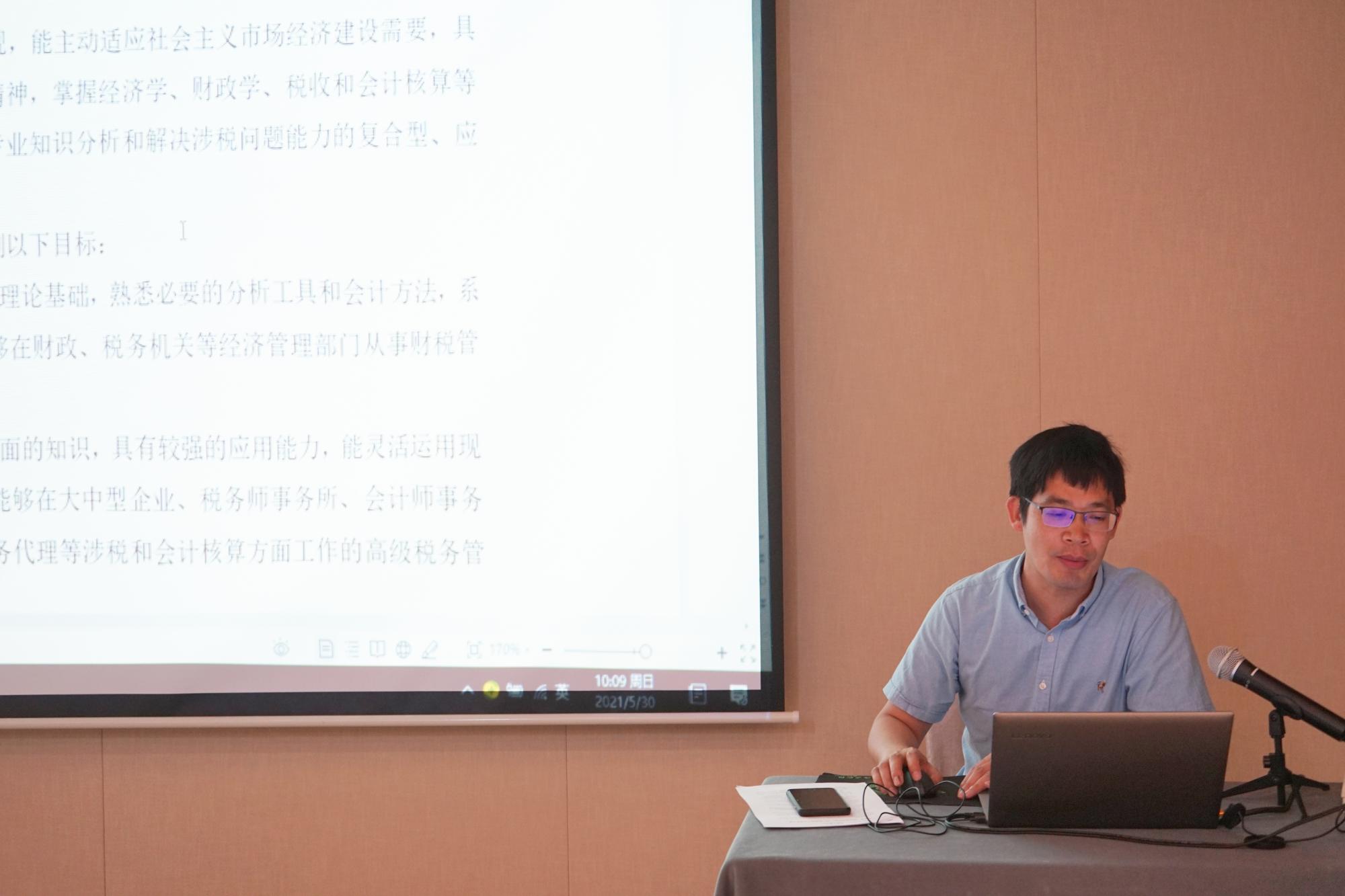 税务系主任张帆主要从税收学专业培养方案、税务师班培养方案以及国际税收方向班培养方案几个方面展开详细介绍,尤其关注课程设计、学分设置等方面的内容。