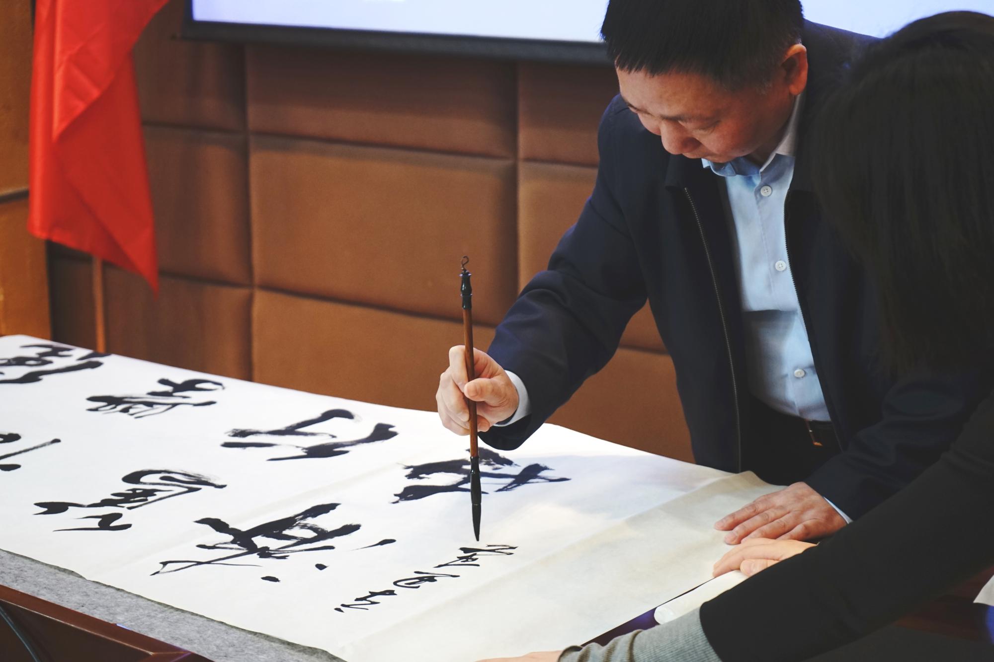 最后,杨灿明校长挥笔题写了博彩导航