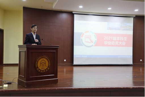 教学副院长童光辉、教师代表叶宁、学生办主任李永涛、教学办主任吕涛出席,教学秘书方梦澜主持,全体2021届毕业生参加了此次动员大会。