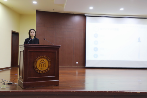 接着,叶宁老师对毕业论文的写作规范和注意事项进行了详细深入的指导。她强调“好的选题是成功的一半”,鼓励同学们尽早启动论文选题工作,可以通过同学讨论、文献查看、查阅书籍等方式寻找自己感兴趣的主题,而后与导师商讨确定最终选题。为方便大家查询数据和资料,她给同学们推荐了数据库。同时,叶老师也提醒大家在写作时应该注意格式,仔细阅读博彩导航