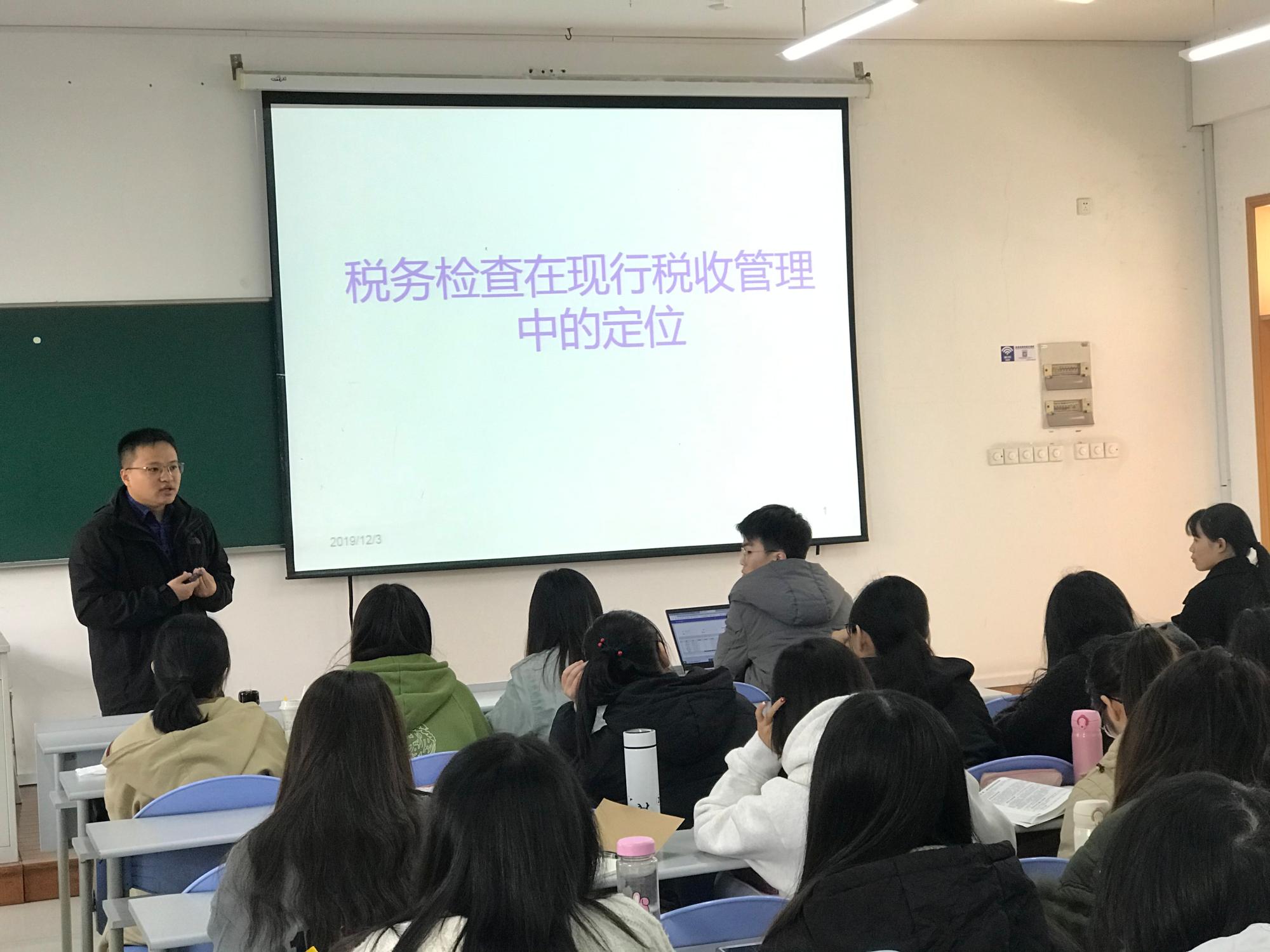 于教学楼C楼306教室举行了“基地精英进课堂”——税务检查在现行税收管理中的定位专题讲座。本场讲座由杭州市税务局章凯锋主讲,博彩导航