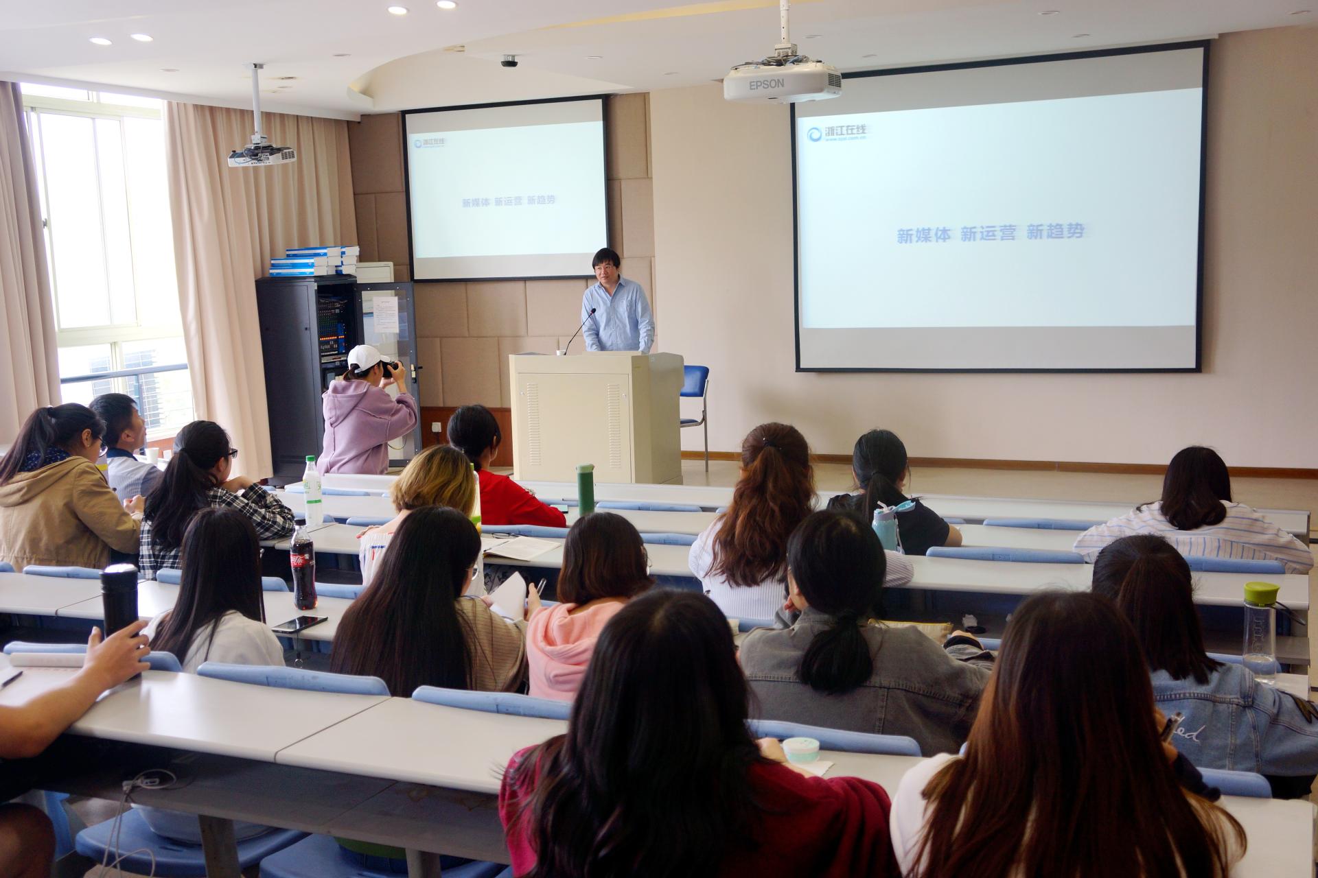 楼208教室作了题为“新媒体,新运营,新趋势”的报告。本次报告作为财经新闻专业 “基地精英进课堂”活动,由博彩导航