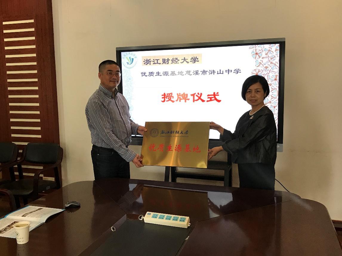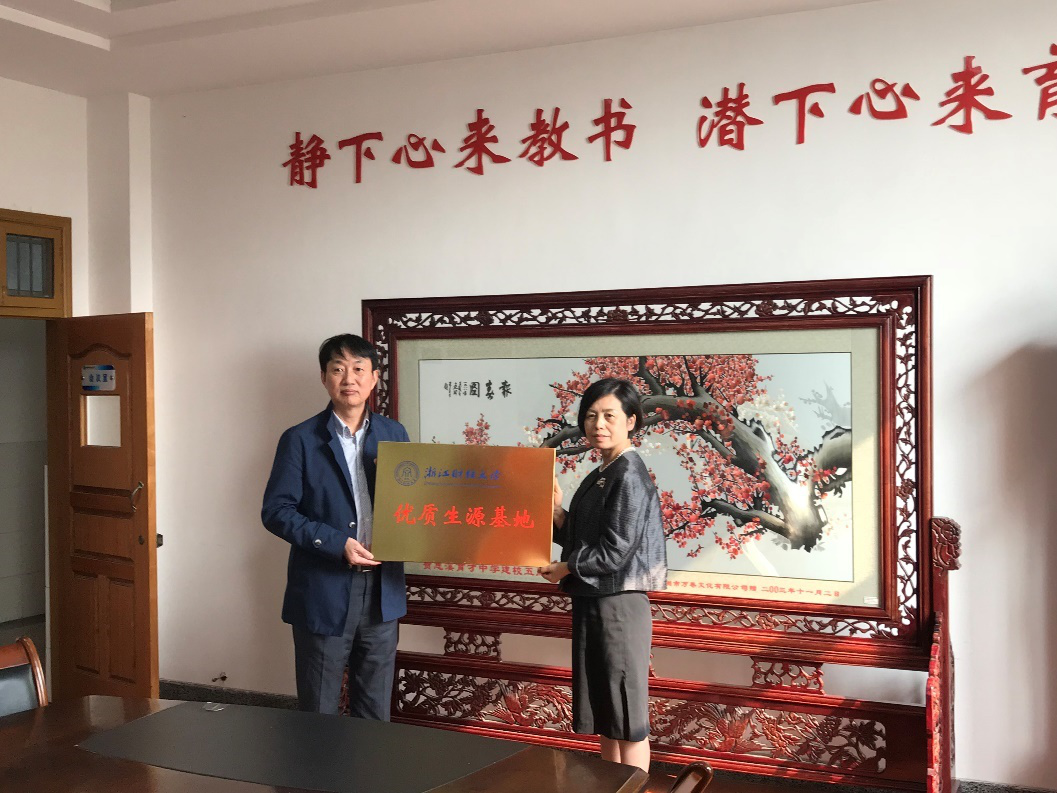 党委书记杨春玲、副书记徐丽玲一行赴慈溪市五大知名高中:慈溪中学、慈溪市浒山中学、慈溪市实验高级中学、慈溪育才中学、慈中书院开展招生宣传工作,并举行“优质生源基地”授牌仪式。