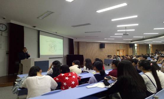 最后,国外生活经验丰富的胡芳老师用自己的亲身经历告诉大家要走出去,去体验一种更加不一样的人生。胡老师言语幽默,多彩的国外体验使得同学们不时发出感叹。