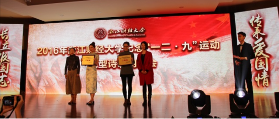 学子创意无限——诗词配上音乐,画面以朗诵、表演等形式展现。或豪放,或婉约,或慷慨激昂,或深情款款,无不展现了同学们的匠心独到和智慧汗水。“大家齐心合力,表现得几近完美,是财税精神在支撑着我们,是一二·九运动精神在鼓舞着我们。”演出结束后,负责人顾露亚如是说道。