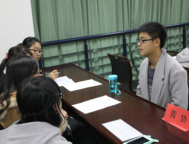 本次招新工作在一番井然有序的氛围中展开。同学们结合自己的兴趣特长与自身的优势选择合适的部门,干事们则热情的介绍所在部门的概况并耐心回答同学们提出的问题,现场气氛热烈而融洽。竞选者在候场区填写完表格后由各部门干事带领到面试区参加面试。在面试过程中,同学们或热情激昂,胸有成竹,或沉稳笃定,条理清晰,可谓群英荟萃,尽显风采。面试官们仔细倾听,不时提出一些问题来考核应选者,如学习与部门工作之间的分配问题,各部门之间的协调问题等,应选的同学们自如应对,展现出了自信、机智的风采风貌。同时,竞选者们均积极的表明自己渴望加入的决心,要用实际行动,踏实的工作态度完成每项任务。每个竞选的同学都展示了积极向上的态度与良好的精神风貌,给面试官们留下了深刻的印象。