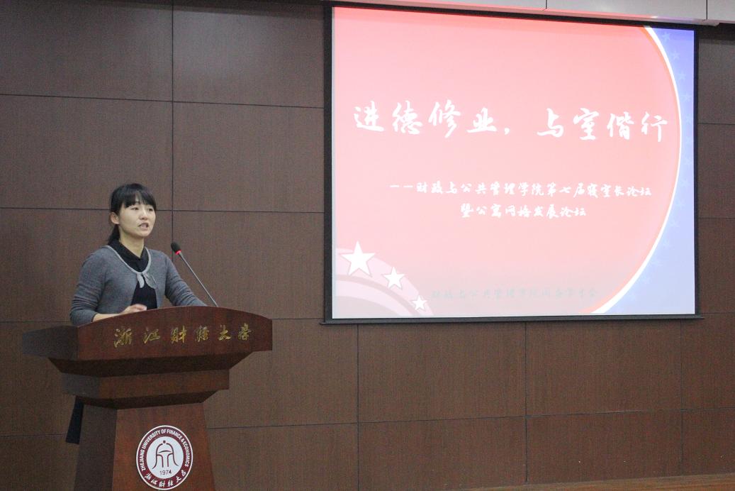 主论坛的最后一项议程是由院学生会主席朱亚慧就日常考勤、科研竞赛、学术社团、成绩分析四个方面进行2015年度学风报告,旨在更好地营造博彩导航