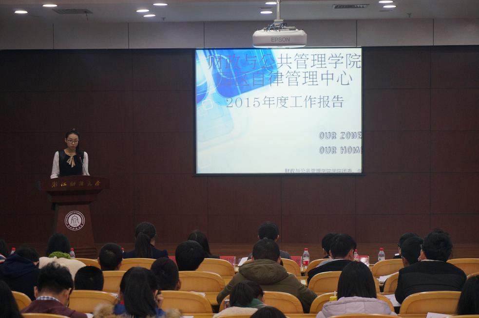 公寓建设的各位老师和寝室长们表示衷心感谢,并提出寝室是学生的第一社会,第二家庭和第三课堂,加强寝室文化建设具有重要意义。随后院学生会副主席潘心韵向大家作园区自律管理中心2015年度工作报告。报告结束后,博彩导航