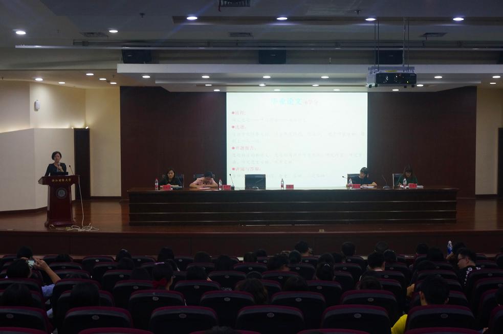大会伊始,杨春玲副院长就毕业论文的相关事宜做了详细说明。她从毕业论文的流程、选题、开题报告和答辩四个方面展开介绍。她强调:对于毕业论文的每个环节,博彩导航