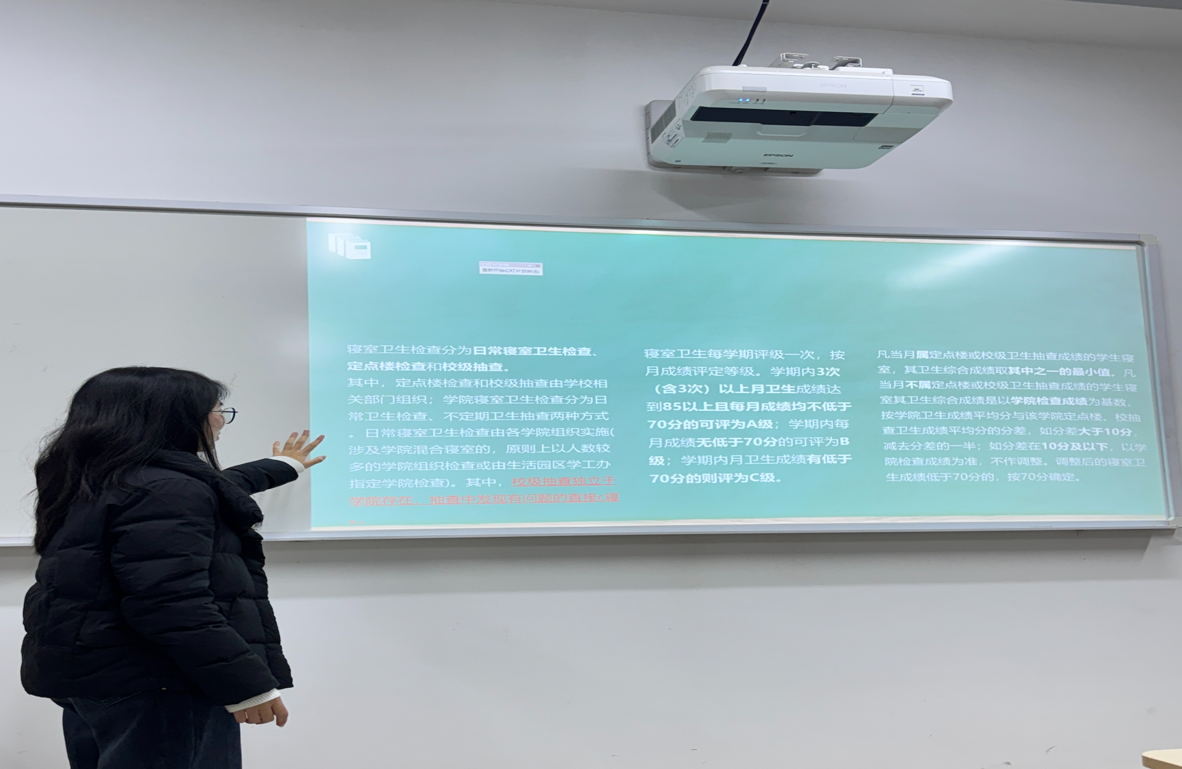 生活权益部针对各班安全委员、生活委员召开专题培训。培训围绕卫生评定、检查制度、“消C”调整机制等核心内容,拆解打分细则、明确职责边界,详解“消C五个办法”,树立“履职有激励、失职有后果”的导向。同时,明确四级网格员的信息传达职责,要求其及时、准确传达博彩导航