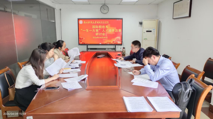 国际税收系组织召开“一生一方案”人才培养改革专题研讨会。会议由国际税收系副主任郑家兴主持,系全体教师参加。