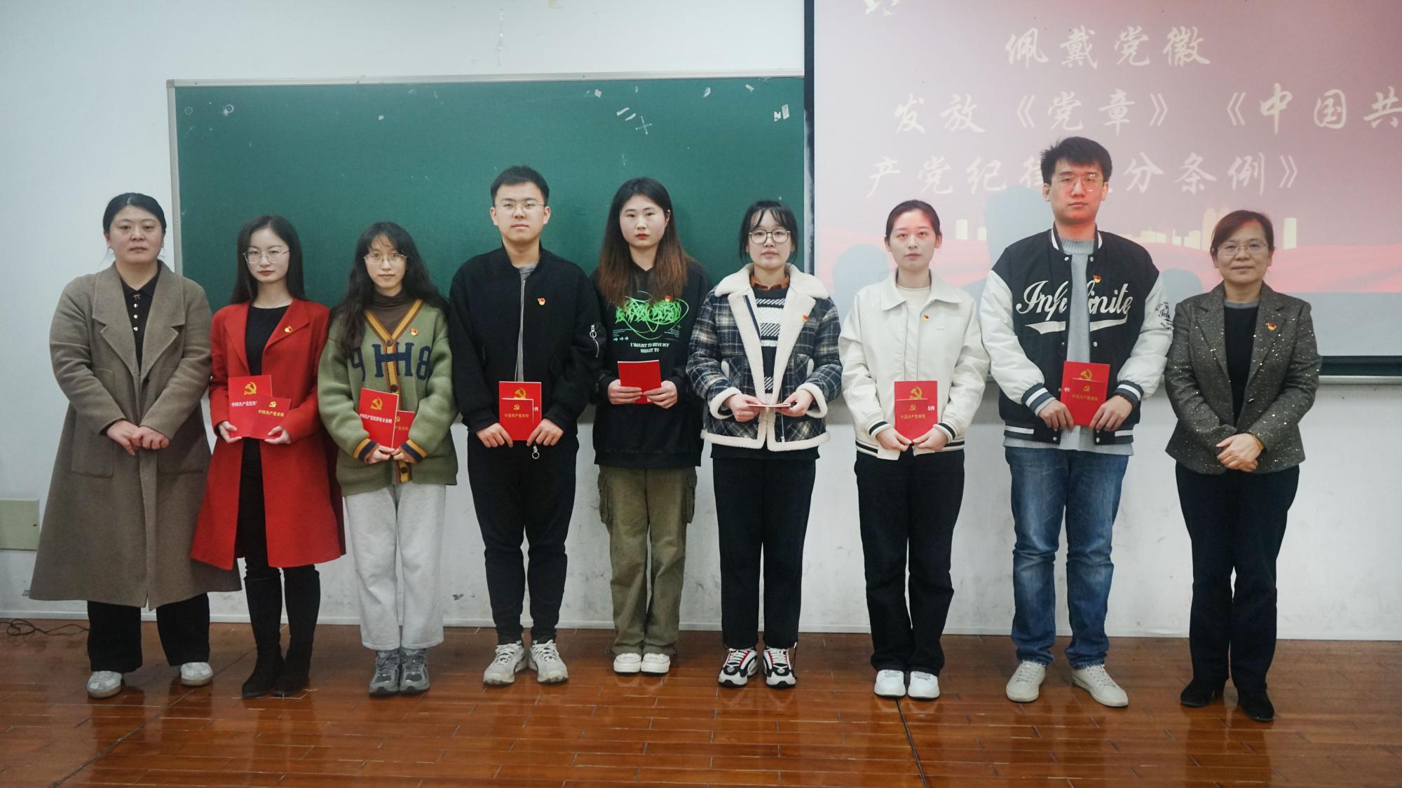 随后,童玉玲为各支部新党员代表一一佩戴党徽并发放《中国共产党章程》,胡卓文为新党员代表发放《中国共产党纪律处分条例》。