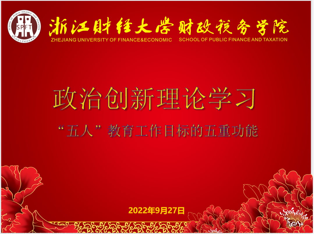 会议第三阶段,由支部书记童幼雏为大家讲授专题党课“财政学大思政建设思路”。童幼雏从大思政理念、大思政建设基本思路、《财政学》课程思政建设和教学设计四个方面讲述了财政学如何立足人才培养目标,紧紧抓住课程这个最基础最关键的要素,建好思政课程和课程思政两个培根铸魂的重要抓手,提高课程思政有效性,实现大思政建设。