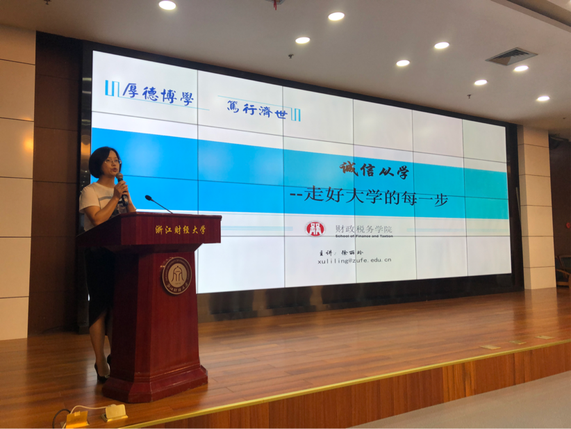 党委副书记徐丽玲老师担任主讲人,围绕“诚信从学”和“党员发展流程”给新生们上了生动形象的一课。
