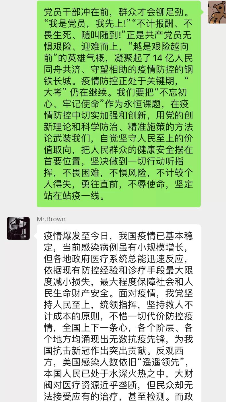 通过本次微党课学习讨论,我支部党员同志们深刻认识到共产党员的无畏与奉献,责任与担当。“不忘初心、牢记使命”既是所有行动的归因,也是战“疫”到底的必胜信心!