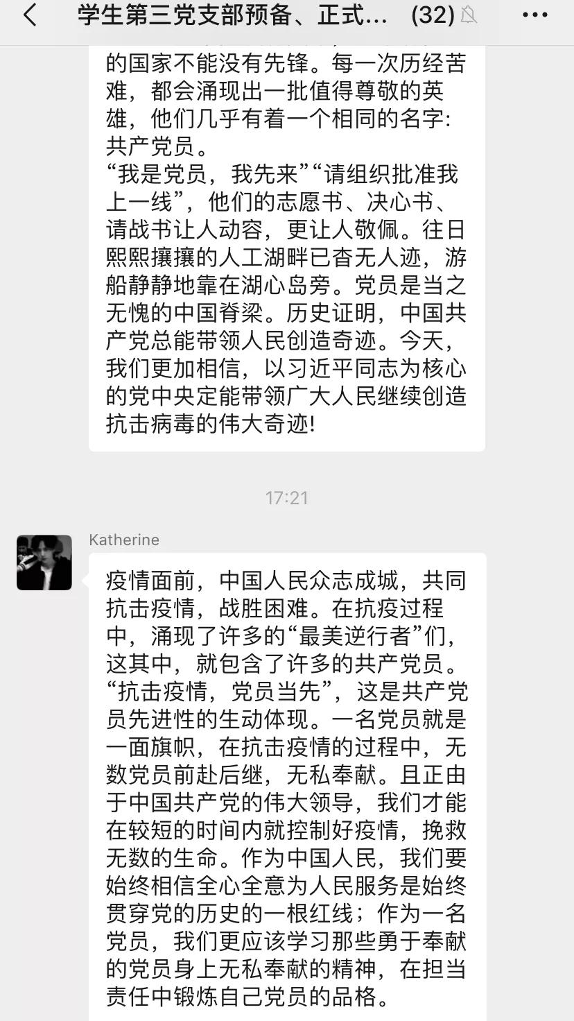 课后,我支部党员同志及入党积极分子就本次微党课学习在线展开了热烈讨论。