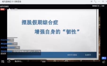 组织党员教师通过“相约星期四”等活动,结合疫情期间,针对学生关注的心理健康、复学准备、返校适应等方面为学生开展在线分享,为学生有序返校复学传道解惑。