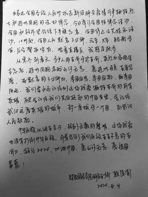 在这两个多月里,很多人走上战疫一线,不畏艰险,冲锋在前,用自己的身躯为我们扛起一道道隐形的墙。相信再过几天,离汉离鄂通道亦即将开启,早日打赢这场疫情阻击战,就是对逝者最好的告慰。