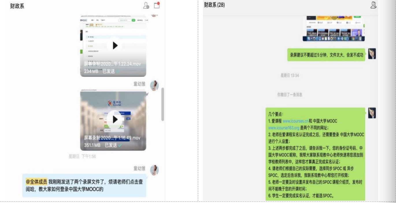 作为系副主任,她统筹协调,为了让所有老师都能在短时间内掌握这些技术与授课技巧,她比较了各大网络通讯平台,反复预演测试,设计在线教学预案。2月23日,她召集财政系全体老师开展线上教研活动,以《财政学》为例,通过视频演示和屏幕分享等方式为老师们详细讲解了如何利用慕课(MOOC)资源来开展授课,并就MOOC+SPOC与QQ群互动等不同教学工具之间的任务差异和技术细节进行了解答。