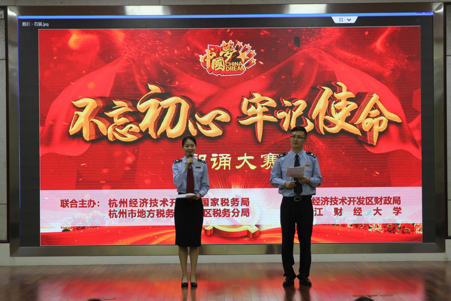 为深入推进“两学一做”、党风廉政学习教育常态化制度化,学习宣传贯彻党的十九大精神,进一步推进支部建设,5月23日,博彩导航 与杭州经济技术开发区国家税务局、杭州经济技术开发区财政局、杭州市地方税务局开发区税务分局联合举办了主题为“不忘初心·牢记使命”的党日活动,活动以诗歌朗诵的形式进行。区局领导班子成员、全系统干部职工、博彩导航 师生代表观摩了比赛。