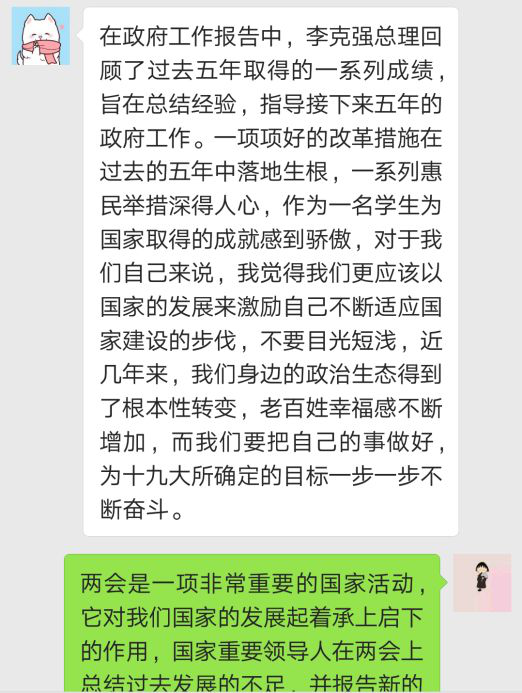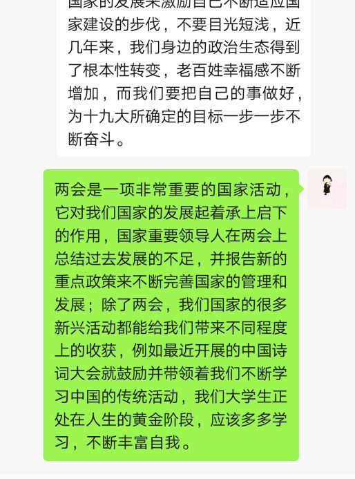 每位党员在认真观看视频之后,分享了各自的学习心得,并通过线上讨论的方式表达了自己对两会的认识。