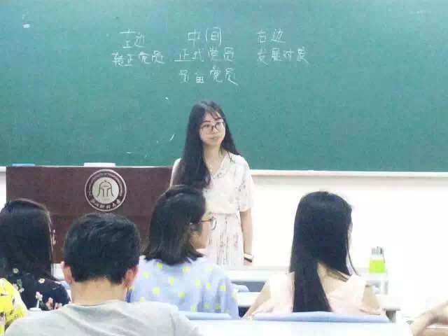 预备党员转正流程开始。答辩会上,每位预备党员分别就自己一年预备期内的思想、学习、工作、个人成绩、不足之处、今后努力方向等情况作了个人陈述。接着,答辩老师分别就党的理论知识、时事热点、个人经历感悟等不同内容,对12名预备党员先后进行答辩询问。不管是党的基本知识,或者是一带一路、“十三五”规划等时政类题目,还是“作为第二党支部的一份子,你是否参加过支部的党建活动,你对支部的党建工作有什么建议吗”等开放式问题,十二名答辩对象都能够正确清楚、具有发散性思维与创新型思维地作出回答,体现出了学生党员应有的党性素养、知识功底与对时事热点的聚焦关注。