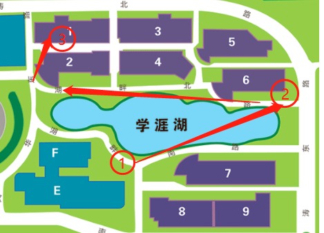 ,沿学涯湖共设3个固定点。如图: