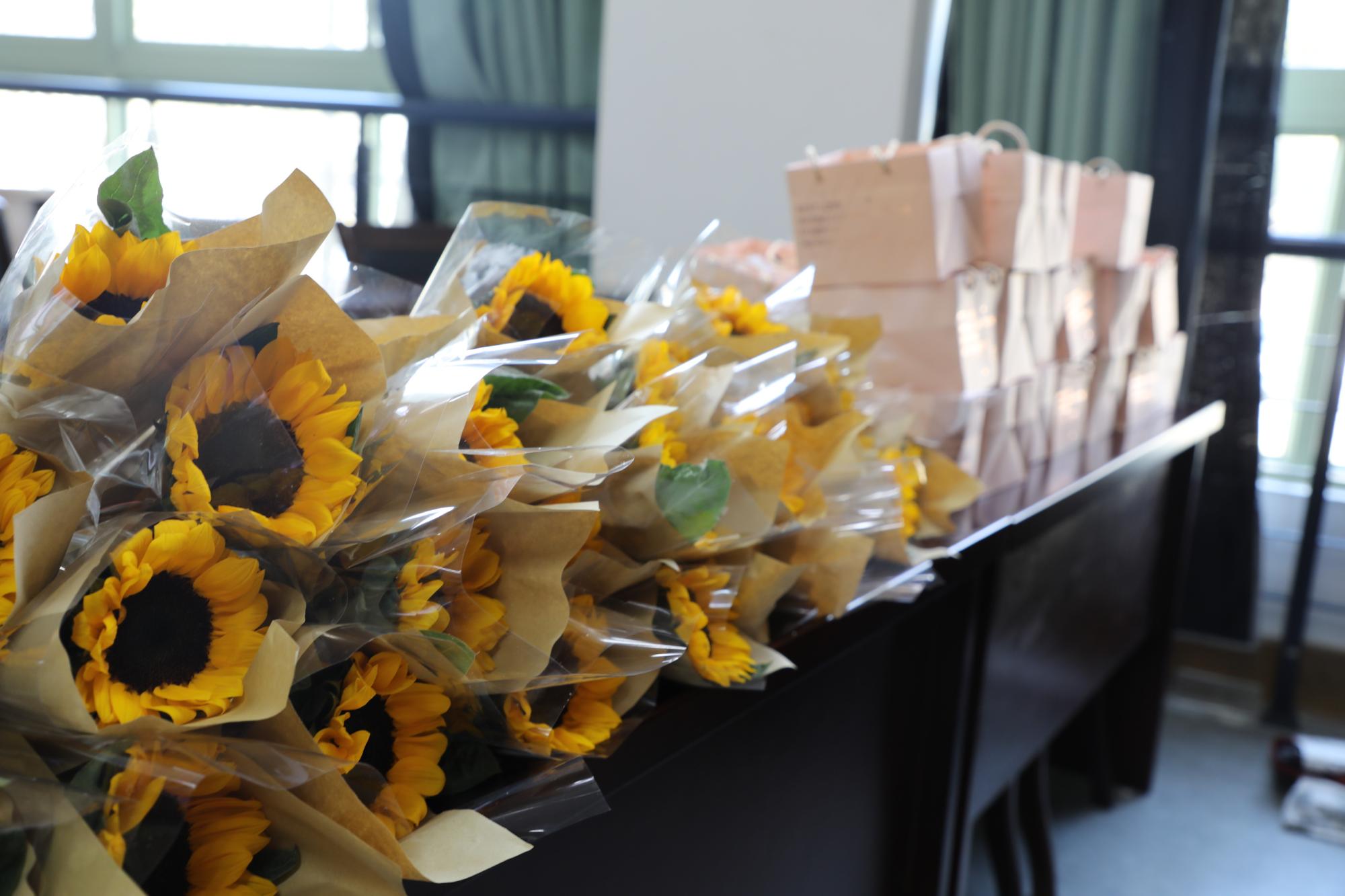 老师齐聚106教室,由男教师们为女教师送上诚挚的节日祝福和礼物。