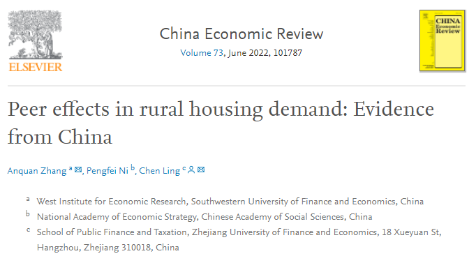 财经战略研究院倪鹏飞研究员合作的论文《Peer effects in rural housing demand: Evidence from China》在国际期刊ChinaEconomicReview正式发表。