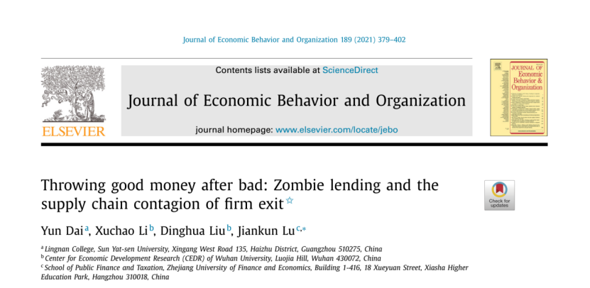 李旭超副教授以及博士生刘丁华合作的论文《Throwing good money after bad: Zombie lending and the supply chain contagion of firm exit》在经济学国际顶尖学术期刊《Journal of Economic Behaviorand Organization》发表。